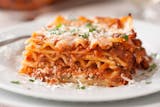 Layers of eggplant smothered in sauce & covered with mozzarella cheese.